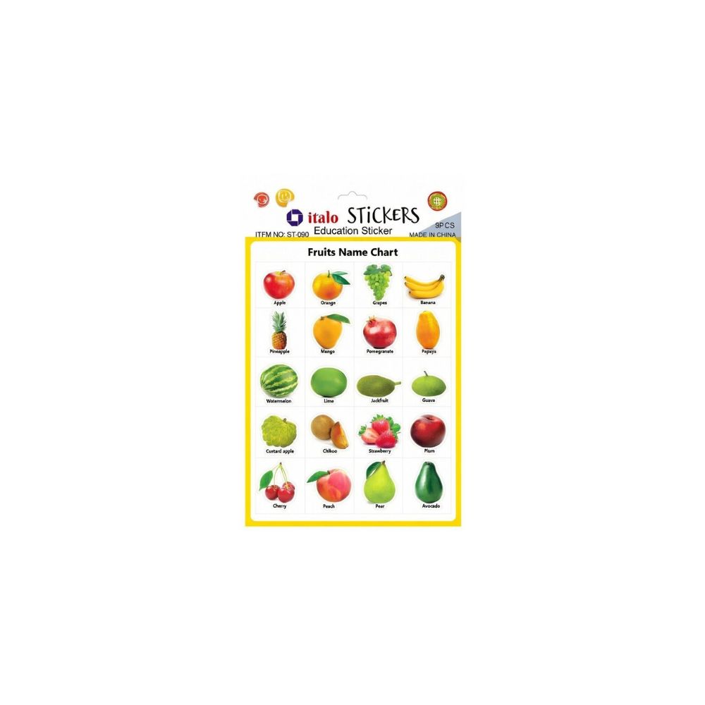 Educational fruit stickers designed for learning and fun Five packs with 20 stickers each Perfect for classrooms and home learning activities