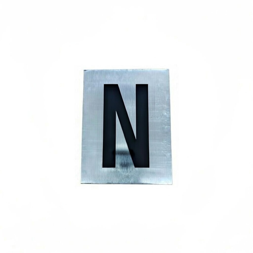 Durable aluminium sign sticker featuring the letter N in a clear modern design. Measuring 6×10.5cm this high quality italo NW538 sticker is perfect for labeling mailboxes doors or any surface requiring elegant identification.