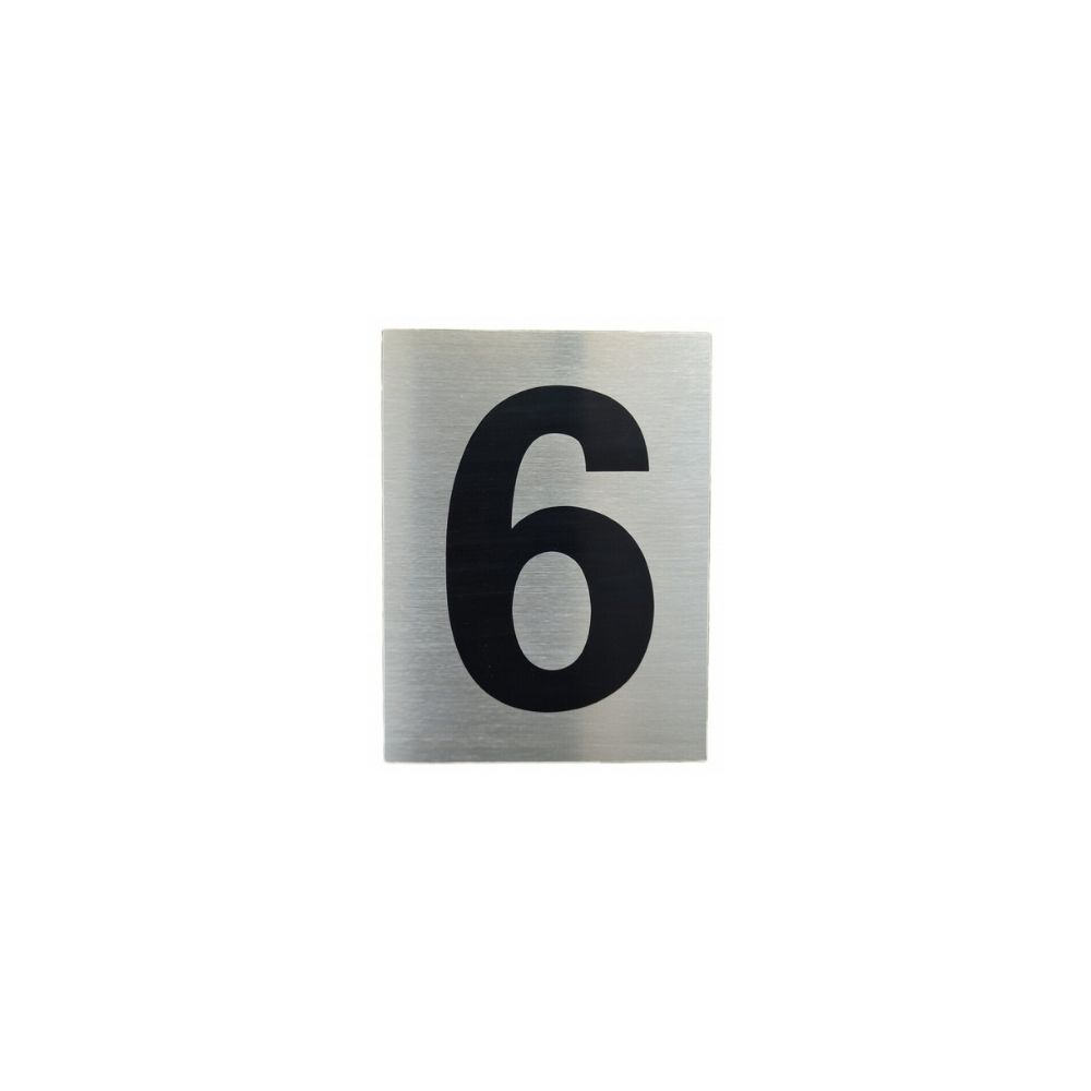 Durable aluminium sign sticker displaying the number 6 with dimensions of 8×10.5cm Perfect for home or office numbering needs Made by italo model NW512-6