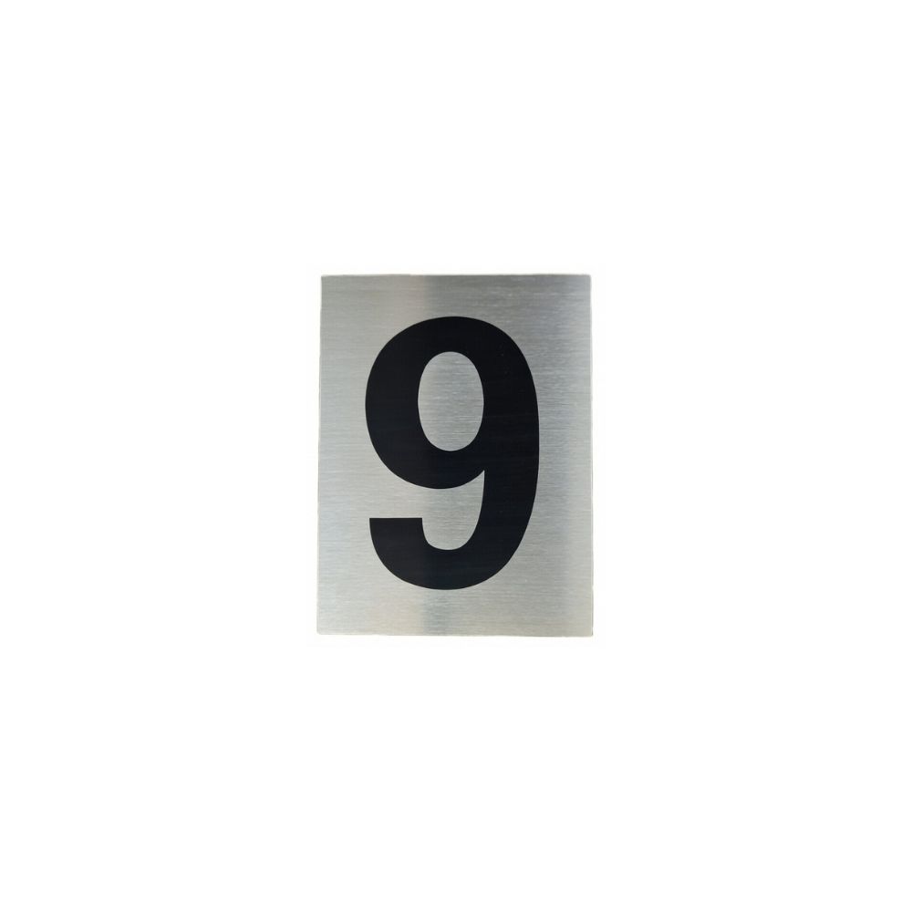 Durable aluminium sign sticker displaying number 9 with dimensions of 8×10.5cm Perfect for indoor and outdoor use with high visibility and weather-resistant properties Made by italo model NW512-9