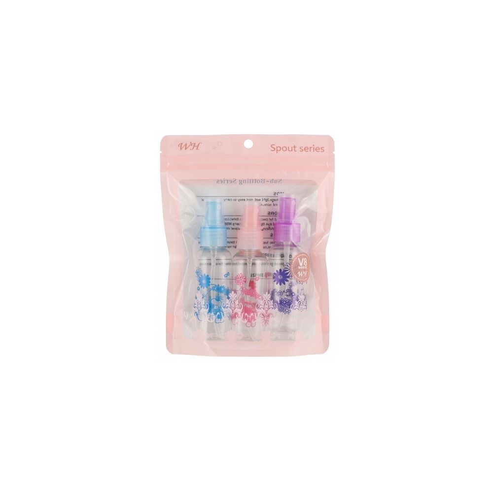 Set of three compact 60ml spray bottles from italo with printed design. Perfect for storing and dispensing liquids with convenient portable size. Ideal for travel or everyday use.